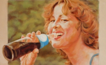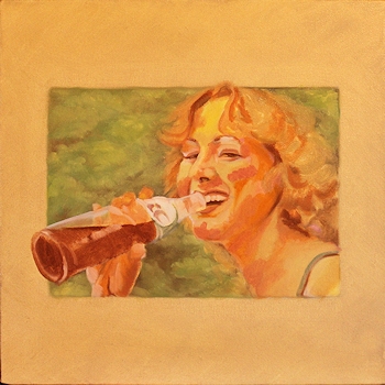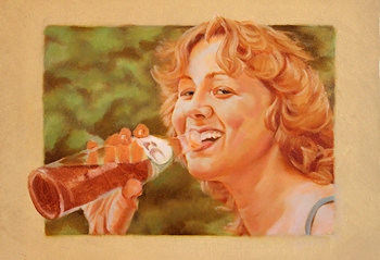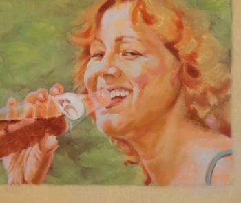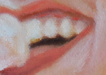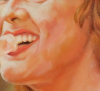 I wanted this painting in the Sherburne County Government Center show last spring and had just about finished it, but wanted to put a "retouch varnish" on it to protect it while it showed, with the intention of finishing it later. But, as I applied the varnish, I discovered the hard way that my paint had not dried enough. The varnish brush smeared the painting's brushstrokes all over the place, leaving the image a blended mess, very unpainterly. I was horrified that I had nearly ruined a painting I had worked hours on, but was determined to put it in the show so framed it, as is, anyway. After the 6-week show, I was fortunately able to re-gear my brain back to the color scheme and visual idea I had had originally and managed to get it back in shape. I mention that here so you might not make that particular mistake. If so much time (and life) goes by after you've begun a painting, it's very difficult to take up where you left off. I advise my students to write down major visual decisions for each painting for that very reason. SEPT 1, 2012: Here's sort of an oddball painting I threw together. It's based on a photo a good friend of mine loaned me a couple of years ago. She thought I'd like to paint it. ![]() Not really my cup of tea (the "cute" thing). I especially dislike painting figures who are looking straight at you (unless there's a conceptual reason for it), especially a very young person like this. A child would rarely pose for you like that, so the painting becomes an obvious knockoff of a photograph. There was a bunch of small-leaved plants in the left foreground that I replaced with a hosta-like leaf just to break up the overall texture of the piece. Painting teeth is weird, but painting kid teeth is weirder, especially if they're in shadow. In a sense, this was quite a challenge for a throw-away painting. It will soon be a gift to the friend who loaned the pic to me. At least I know she likes the image. |